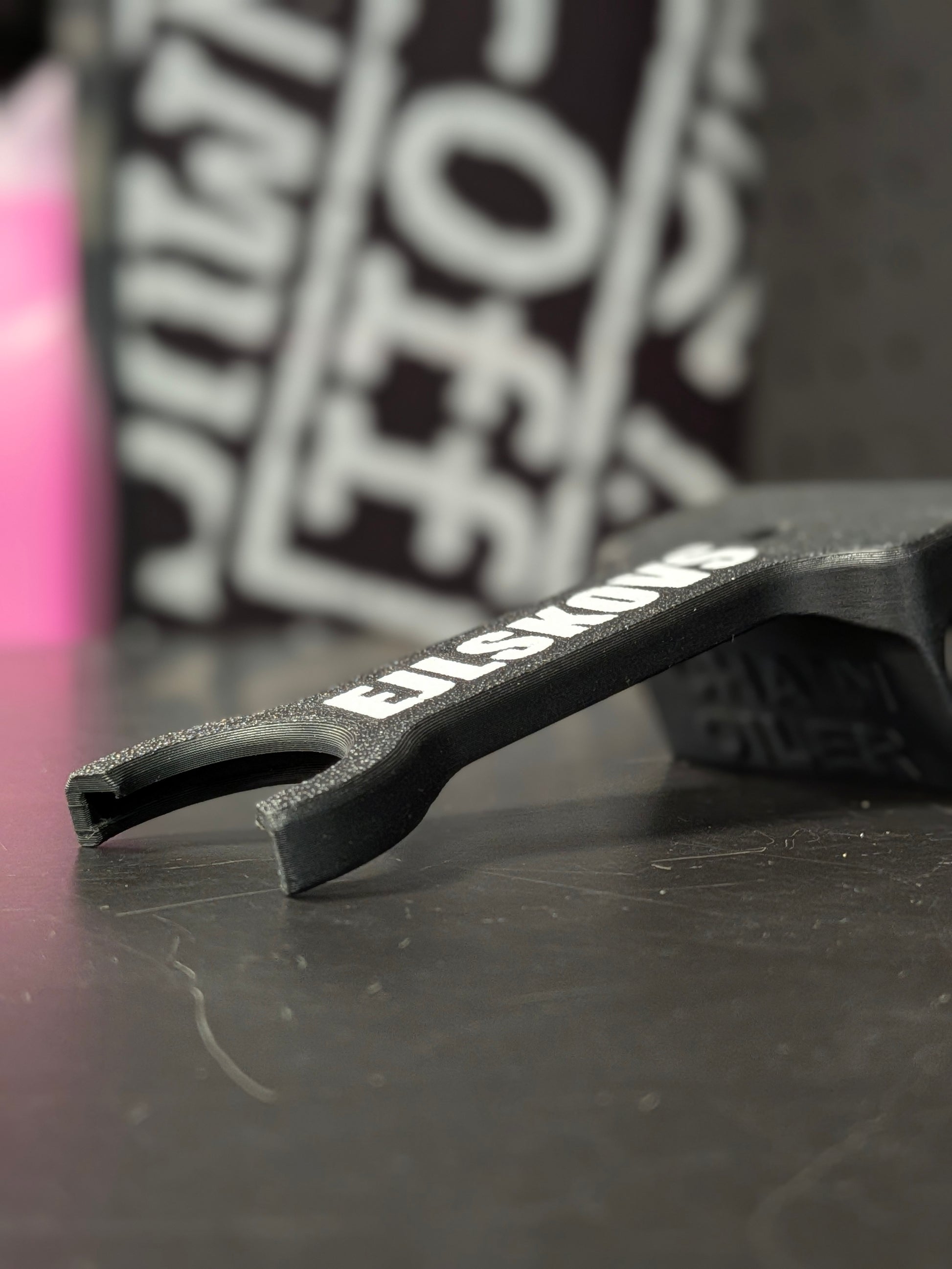 Ejlskovs Kædespray Guide er udviklet som et praktisk hjælpeværktøj til påføring af kædespray på motorcykel. Værktøjet monteres direkte på spraydåsen og holder sprayhovedet aktiveret, så du kan rotere baghjulet frit og påføre kædespray jævnt og kontrolleret.